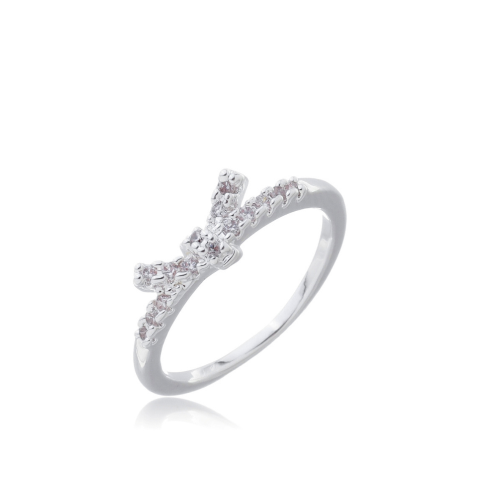 - Modelo: Anel em formato de laço cravejado com zircônia