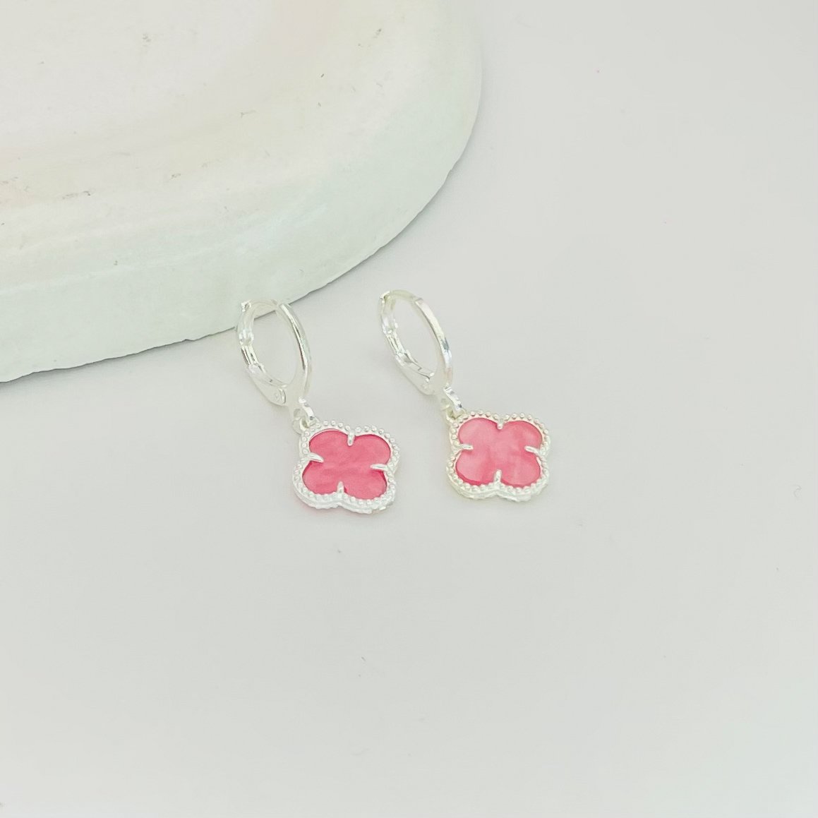 - Modelo: Brinco argolinha com pingente de trevo rosa
