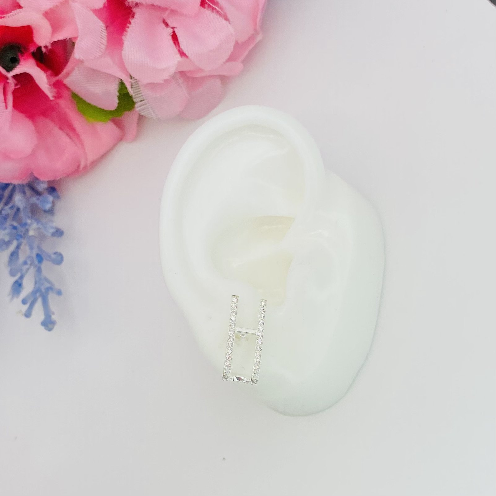 - Modelo: Brinco ear hook em formato de H cravejado com zircônia