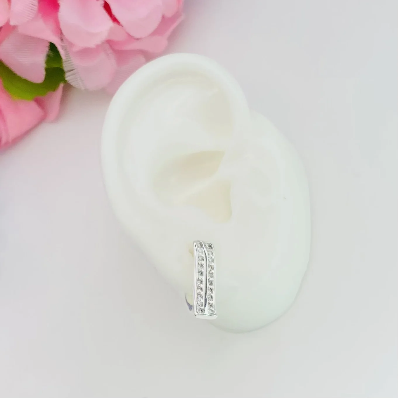 Brinco Ear hook ondulado banhado a prata 925 (70 milésimos) + verniz italiano, cravejado com mini zircônias.