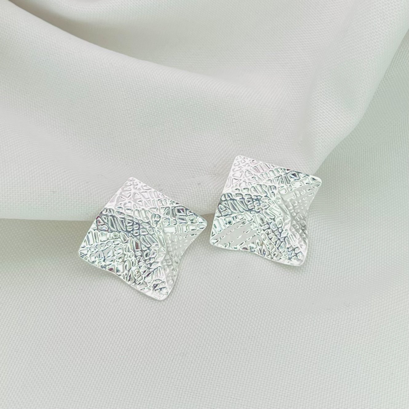 - Modelo: Brinco em formato de quadrado texturizado e ondulado