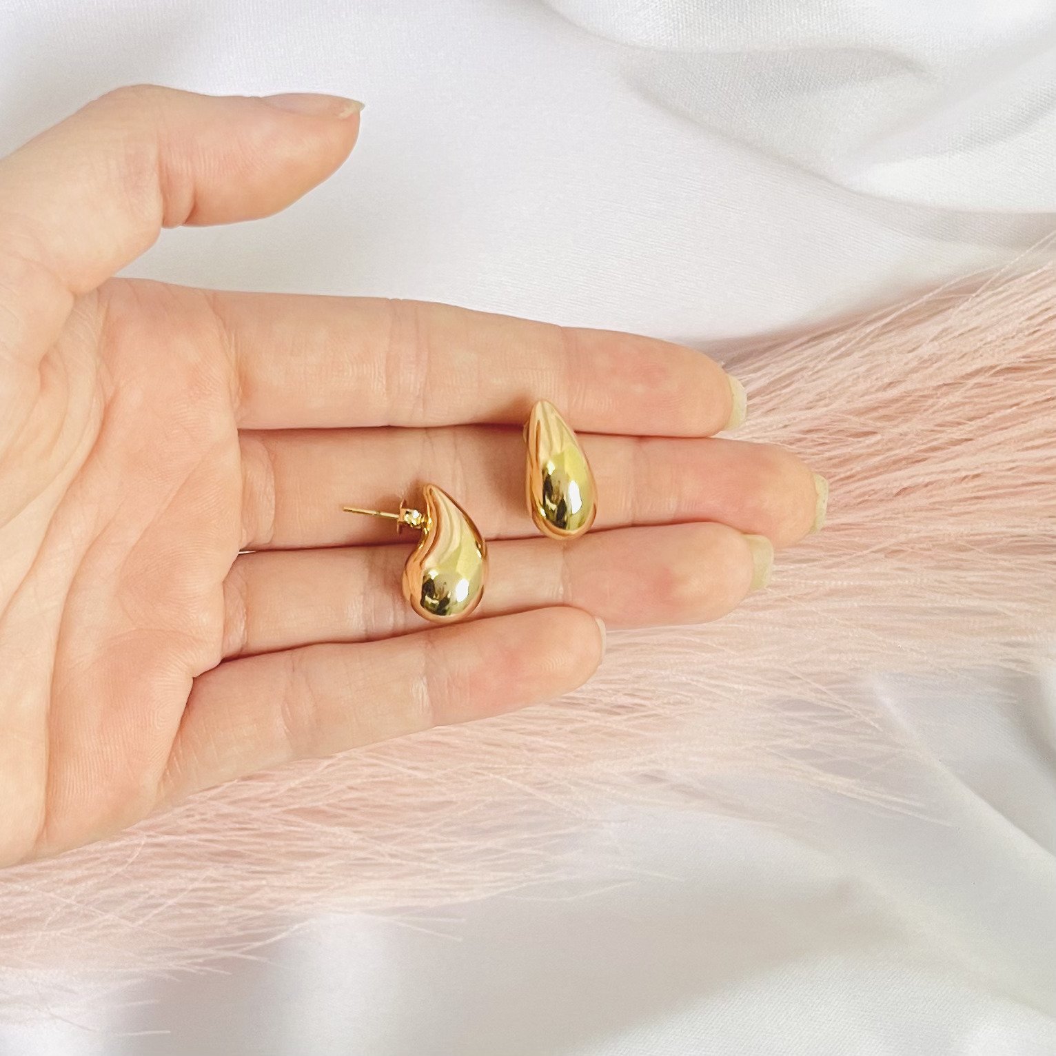 Brinco banhado a ouro 18k (4 milésimos) + verniz italiano, no formado gota pequena.