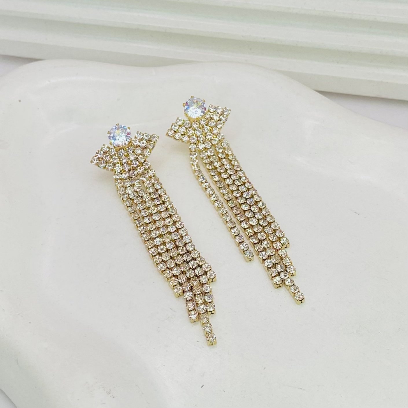 - Modelo: Brinco longo em riviera