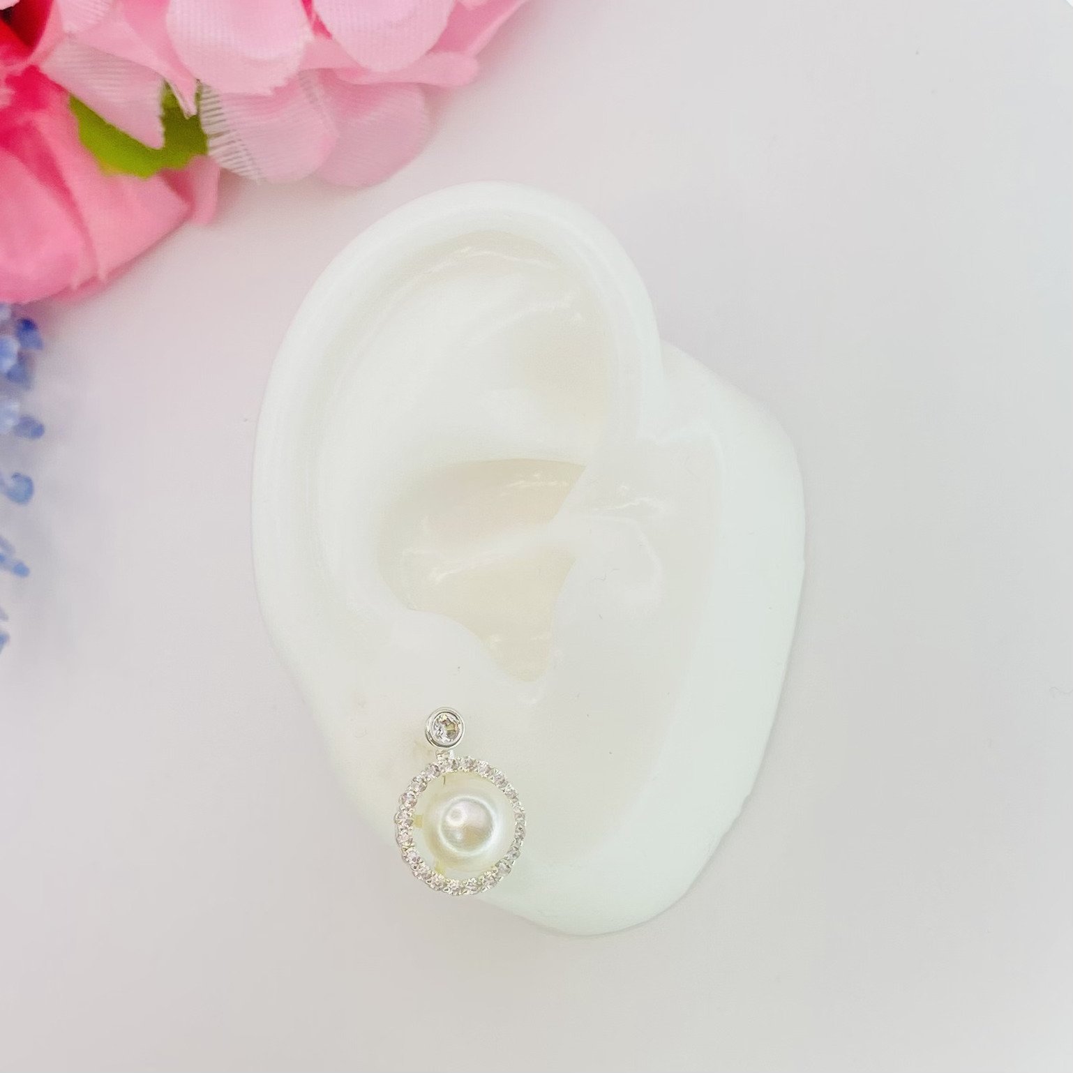 - Modelo: Brinco cravejado com zircônia e pérola central