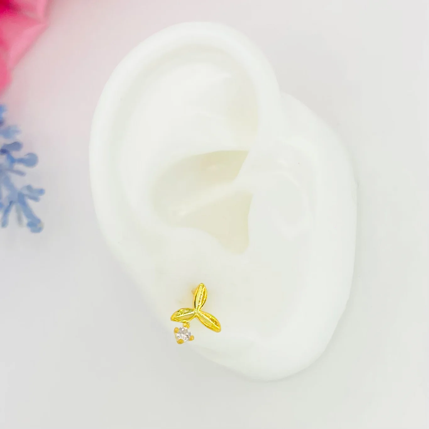- Modelo: Brinco em formato de folhas com ponto de luz em zircônia