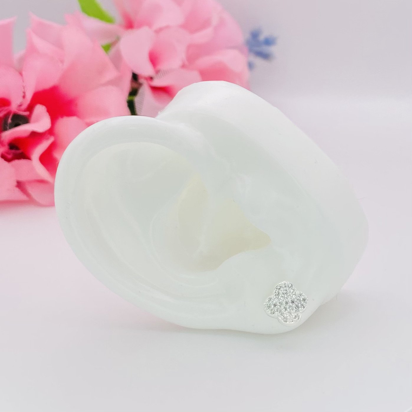 - Modelo: Brinco em formato de trevo curvado cravejado com zircônias