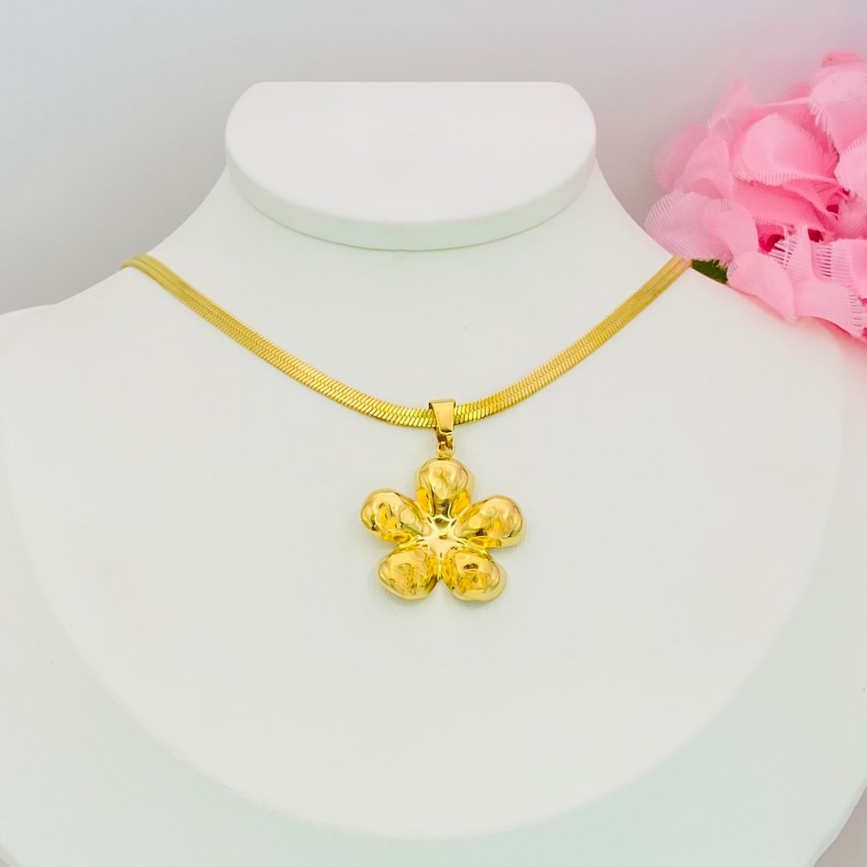 Colar fita aço inoxidável, com pingente de flor