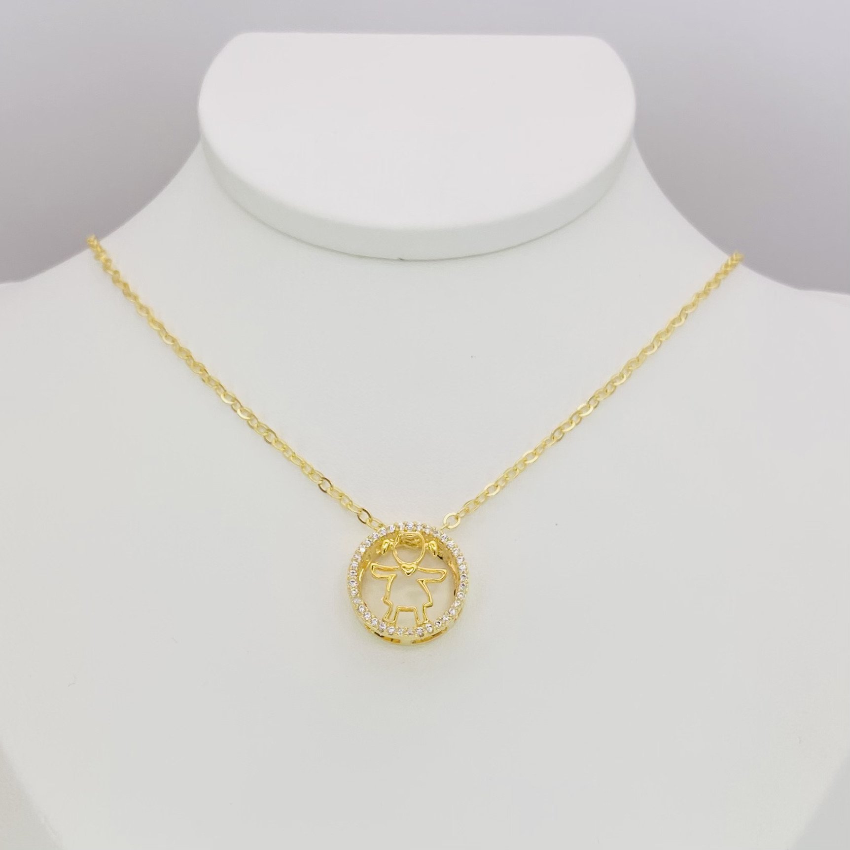 Colar cadeadinho banhado a ouro 18k (4 milésimos) + verniz italiano, com pingente de bolinha cravejado com menina vazado.