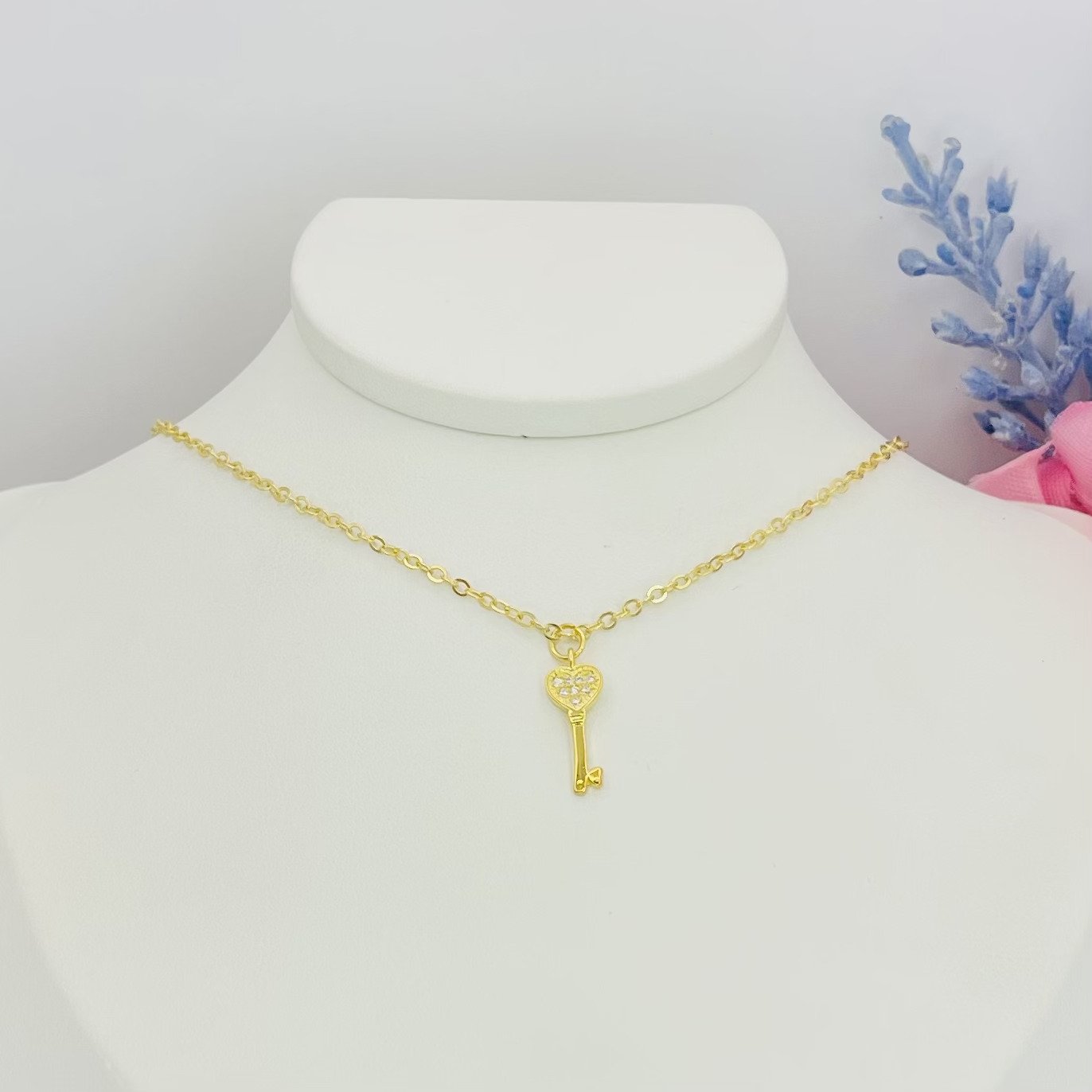Colar cadeadinho banhado a ouro 18k (4 milésimos) + verniz italiano, com pingente de chave cravejado com zircônias.
