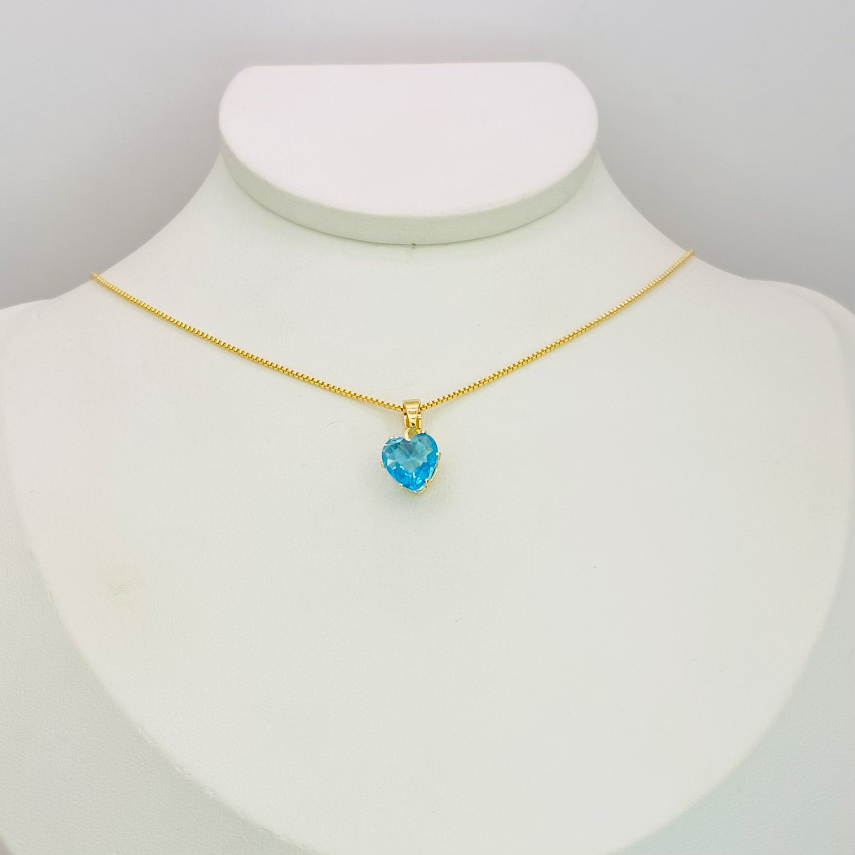Colar com pingente de coração cravado azul claro 8 mm, símbolo de amor-próprio, intuição e transformação. Perfeito para compor looks delicados, modernos e cheios de significado. Ideal para uso diário ou ocasiões especiais, esse modelo transmite sensibilidade e autenticidade e combina com qualquer estilo!