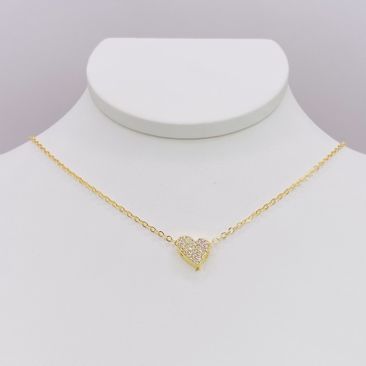 Colar coração curvado cravejado dourado ref 3054