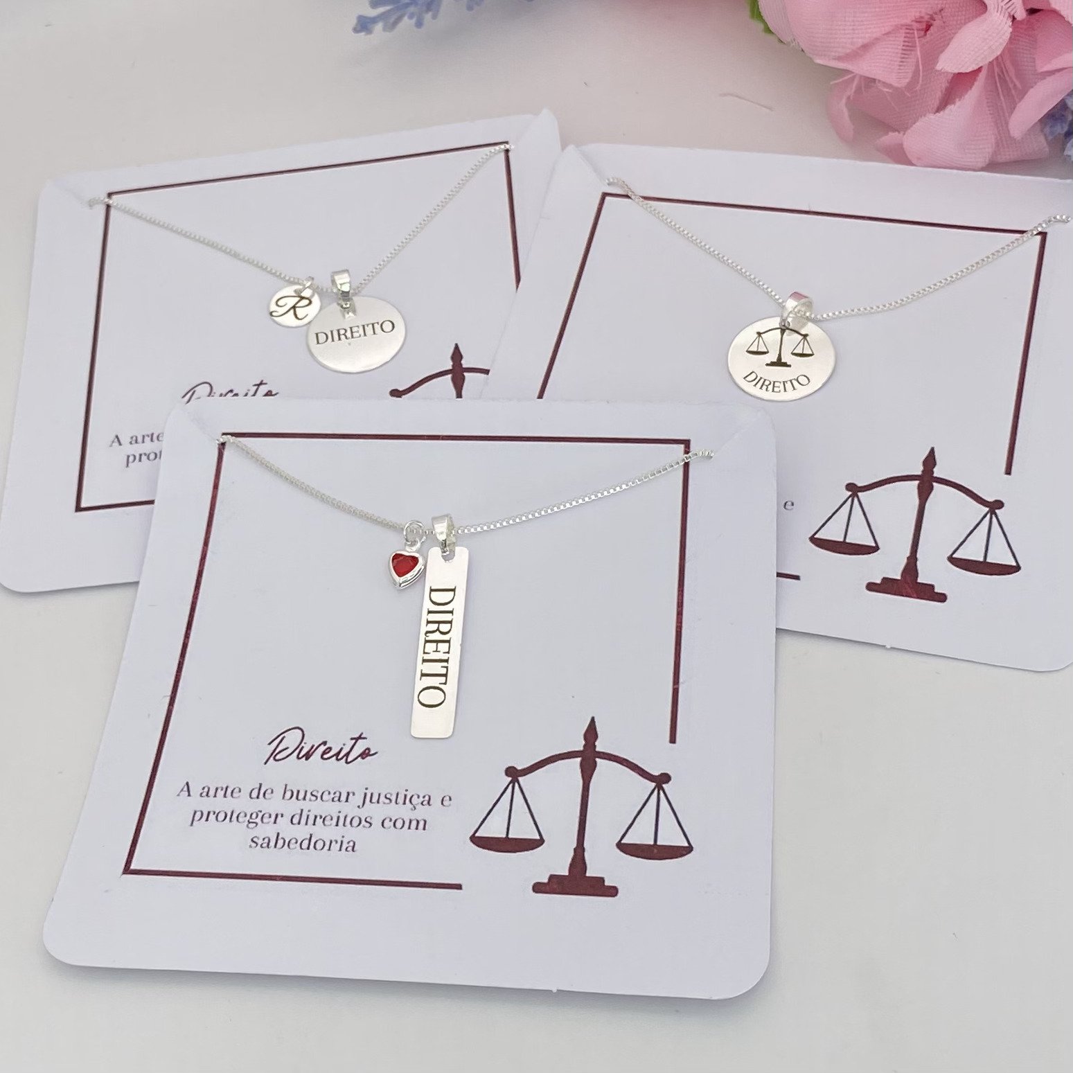 - plaquinha gravada a laser "direito" + mini coração vermelho.