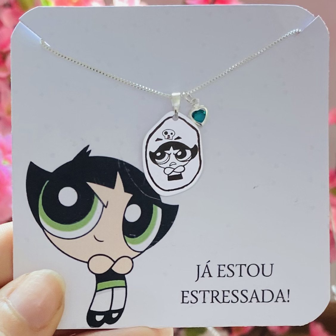 Esse colar acompanha tag personalizada.