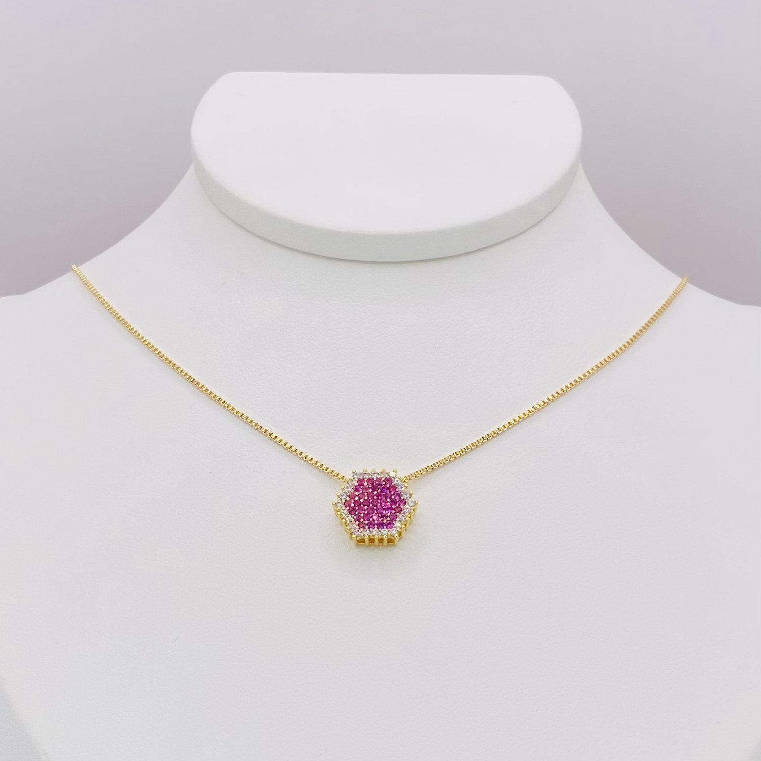 Colar veneziana banhado a ouro 18k (4 milésimos) + verniz italiano, com pingente hexagonal cravejado com zircônias.
