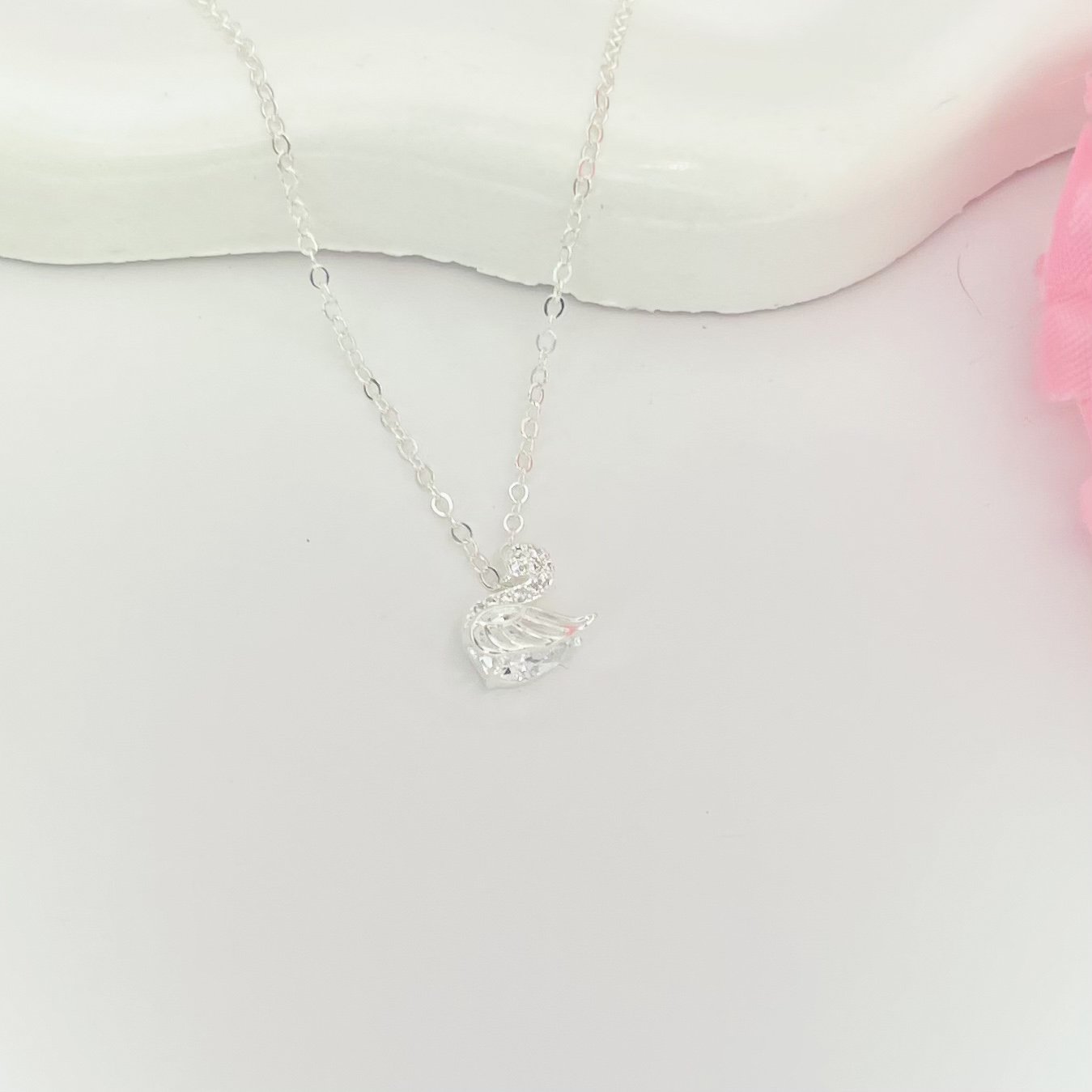 Colar cadeadinho banhado a prata 925(70 milésimos) + verniz italiano, com pingente cisnei cravejado com zircônia.