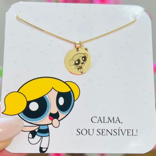 • Pingente de medalha com desenho da lindinha (frente) e a escrita "calma, sou sensível!" (verso)+ mini coração azul
