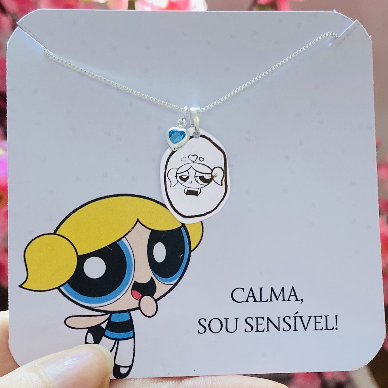 • Pingente de orgânico com desenho da lindinha + mini coração azul