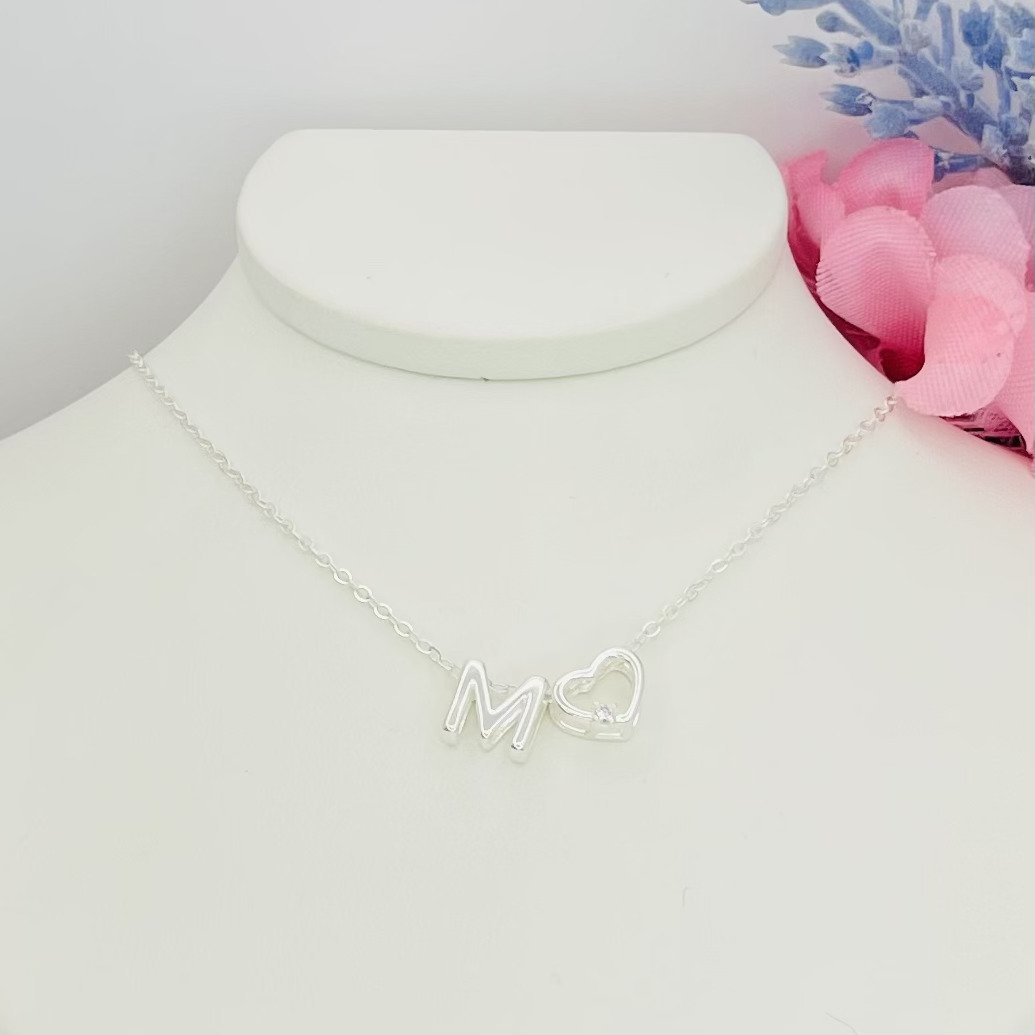Colar cadeadinho banhado a prata 925 (70 milésimos) + verniz italiano, com pingente de coração vazado com ponto de luz + inicial da sua escolha.