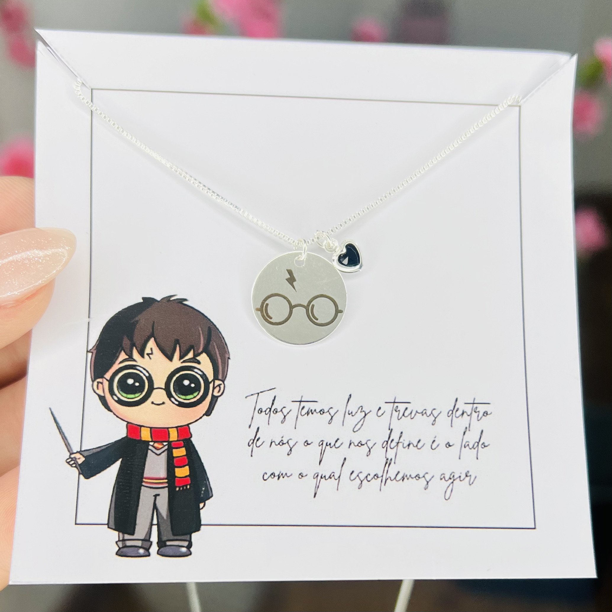 • Pingente de medalhinha com óculos do harry potter