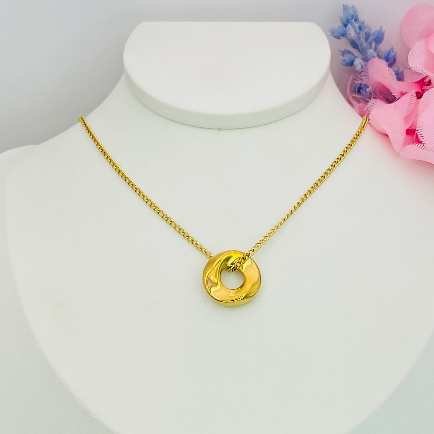 Colar aço inoxidável, com pingente redondo orgânico