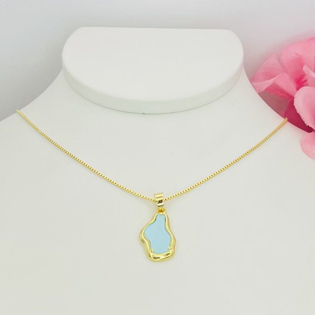 Colar veneziana banhado a ouro 18k (4 milésimos) + verniz italiano, com pingente orgânico azul.