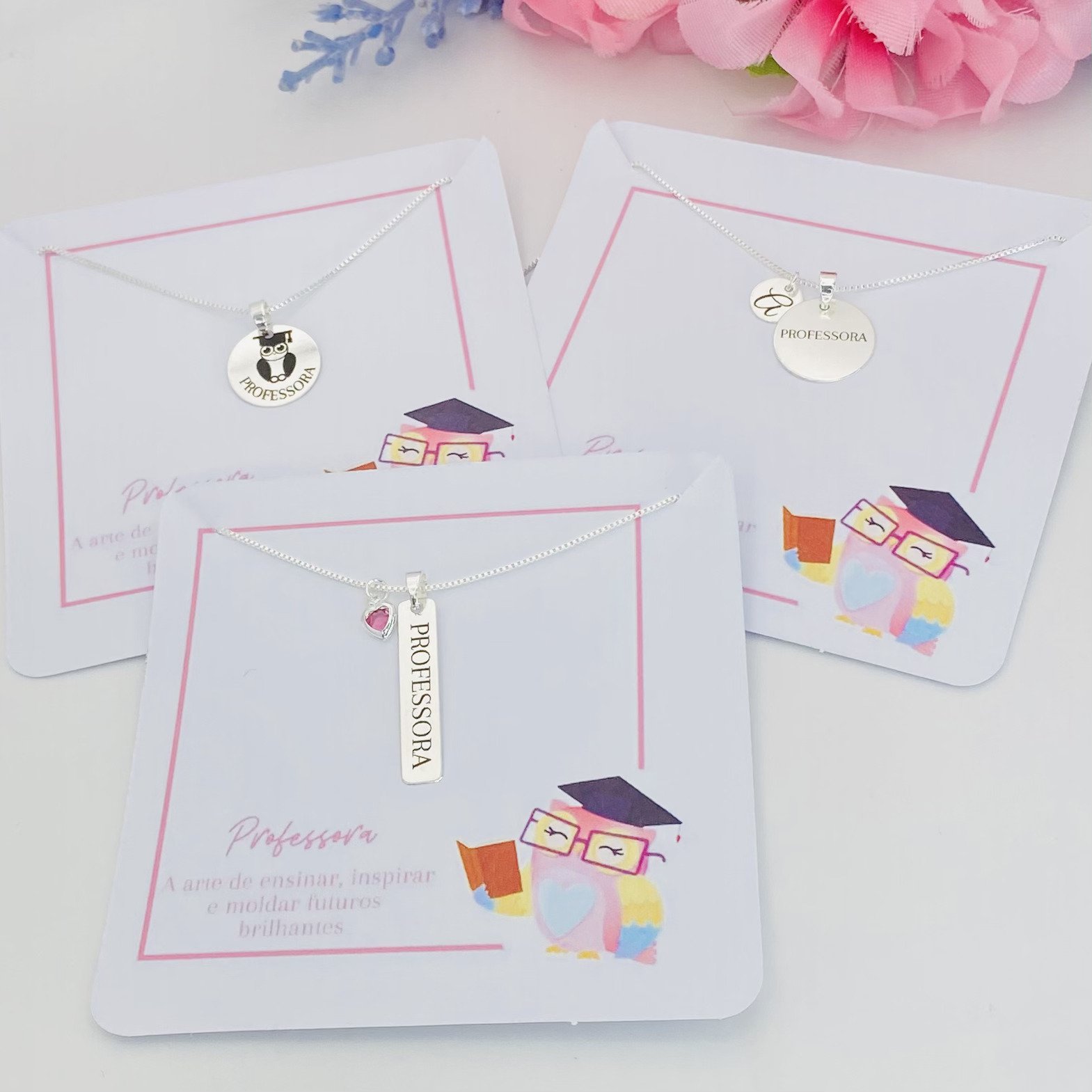 - medalha gravada a laser "professora" + medalha pp com inicial da sua escolha.