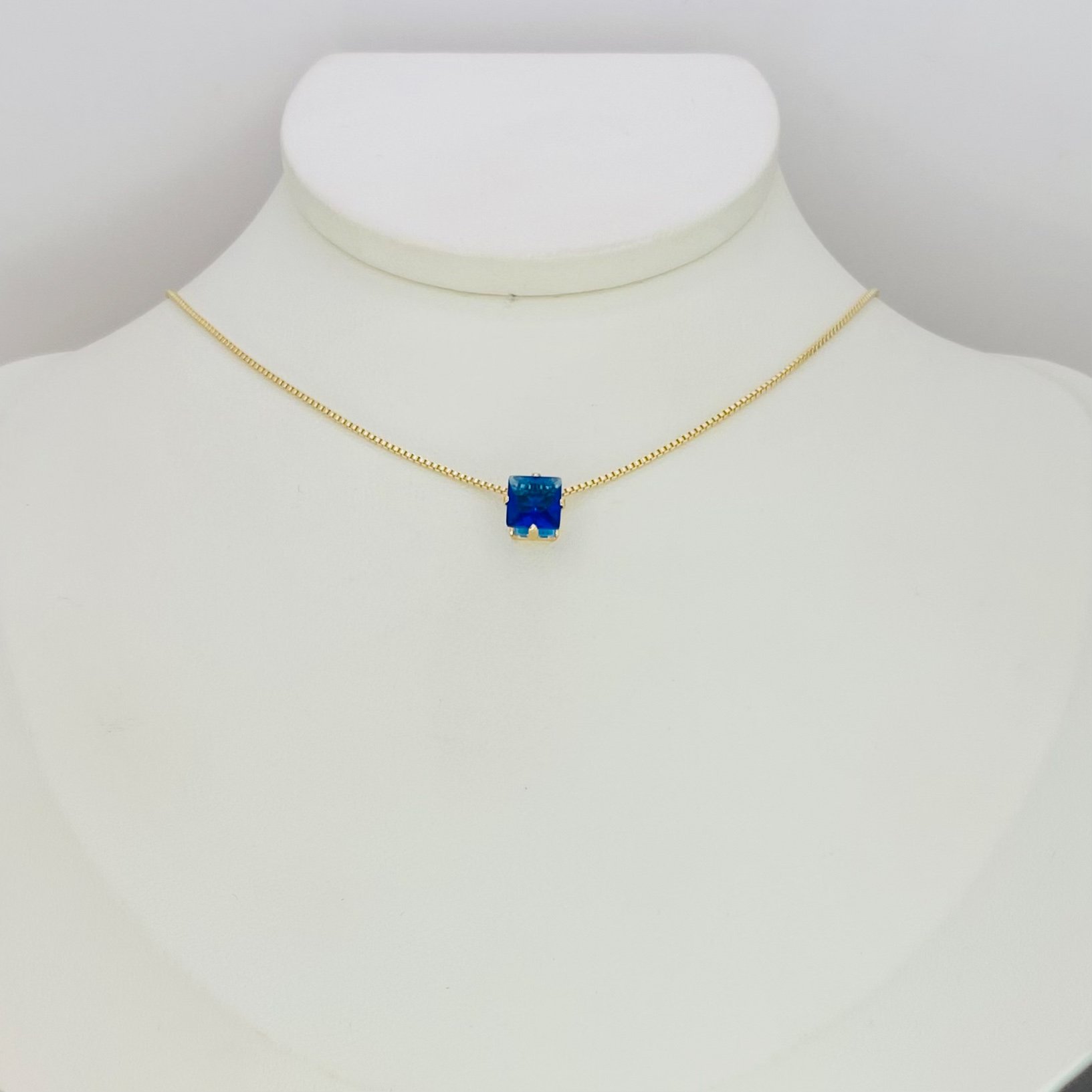 Colar quadrado azul dourado ref 1560