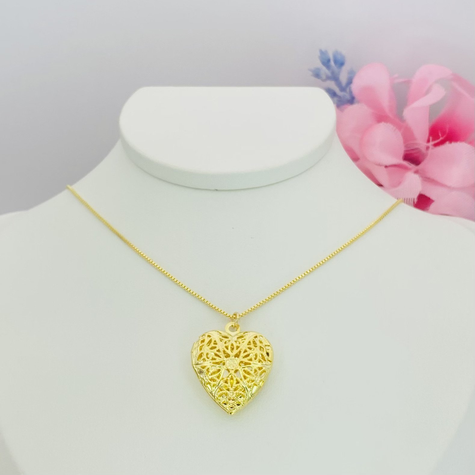 Colar relicário coração rendinha dourado ref 1236