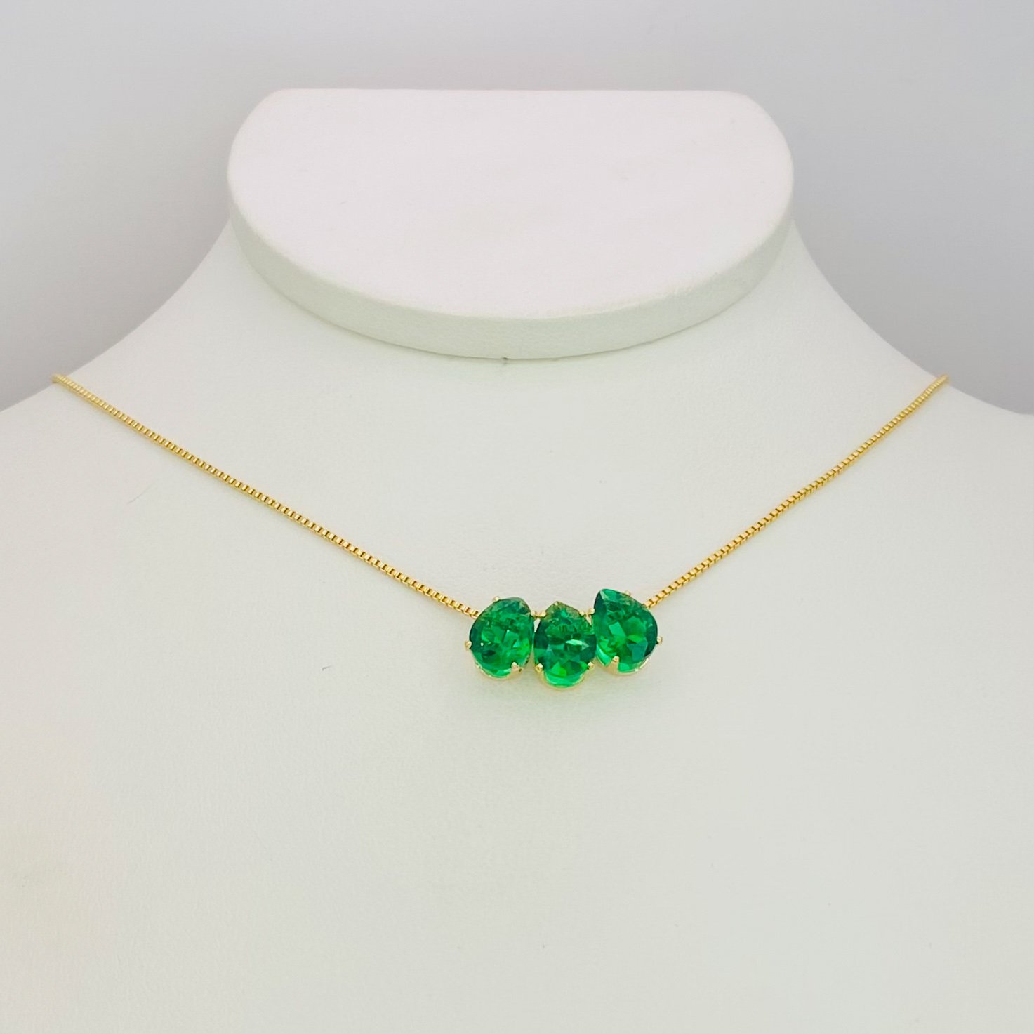 Colar três gotas verde dourado ref 1293