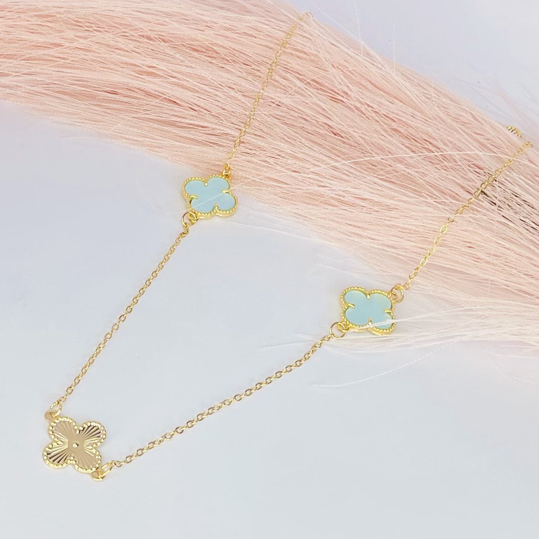 Colar cadeadinho banhado a ouro 18k (4 milésimos) + verniz italiano com pingentes de trevo azul e dourados.