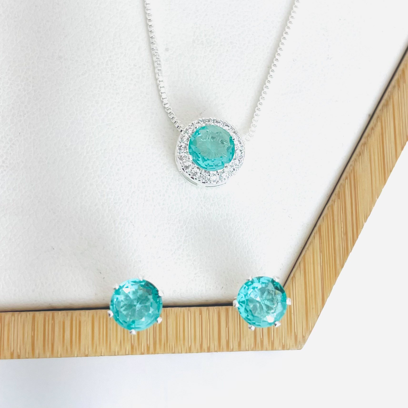 - Pingente Colar: bolinha verde claro cravejado