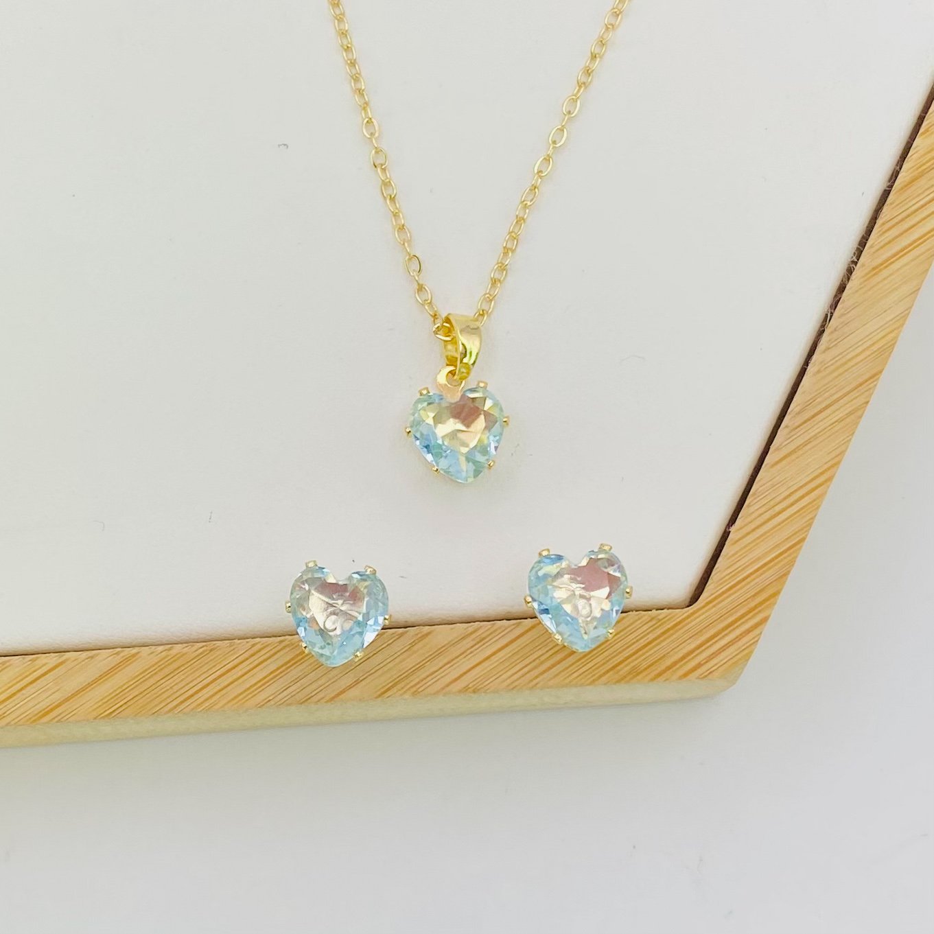 Conjunto coração azul bebê dourado Ref 3842