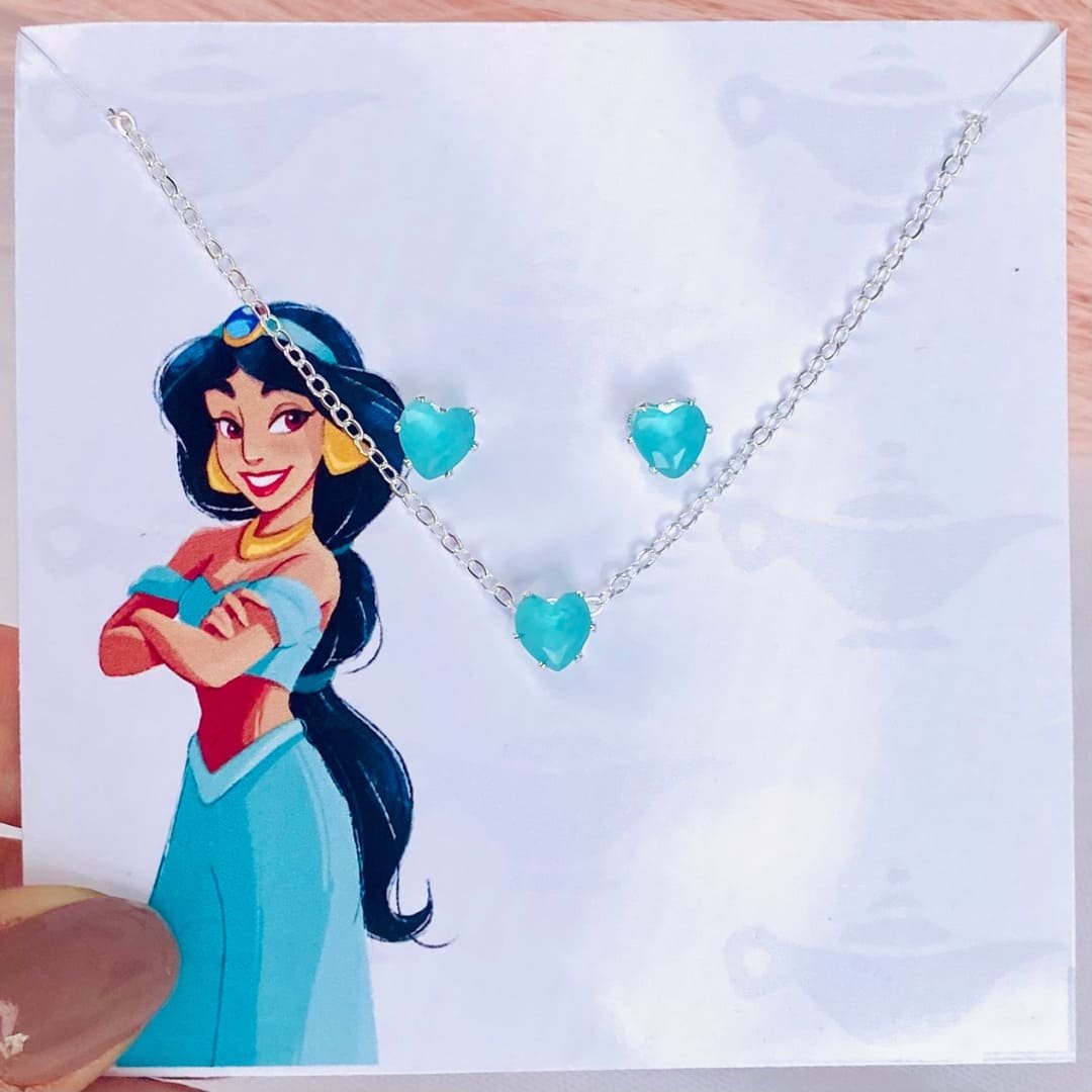 Conjunto colar cadeadinho e brincos infantil banhados a prata 925 (70 milésimos) + verniz italiano, com pingente de coração 6mm cravado azul royal e brinco coração 4mm cravado coração azul royal.