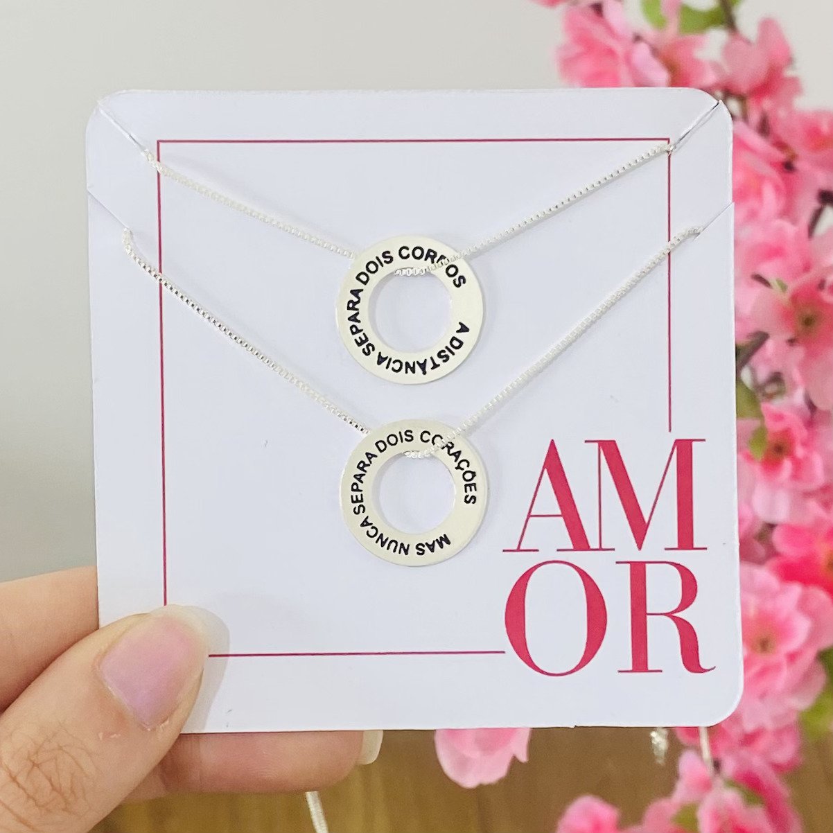 Kit dois colares veneziana banhados a prata 925 (70milésimos) + verniz italiano, com pingente de arco escrito " A distância separa dois corpos / Mas nunca separa dois corações".