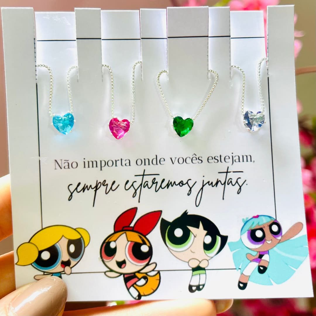 Kit com 4 colares venezianas banhados a prata 925 (70 milésimos) + verniz italiano, com pingentes de coração de 6mm na cor rosa, verde, azul e roxo, ideal para presentes de amigas.