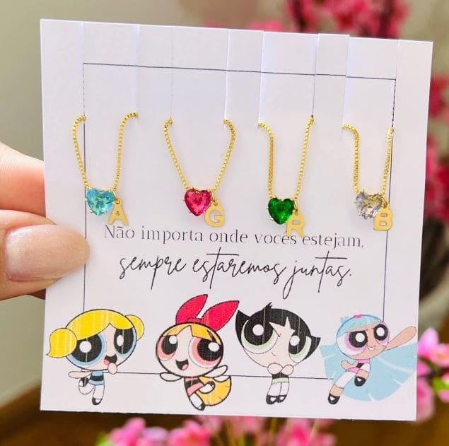 Kit Colares meninas super poderosas com iniciais dourado (4 colares) ref 2482