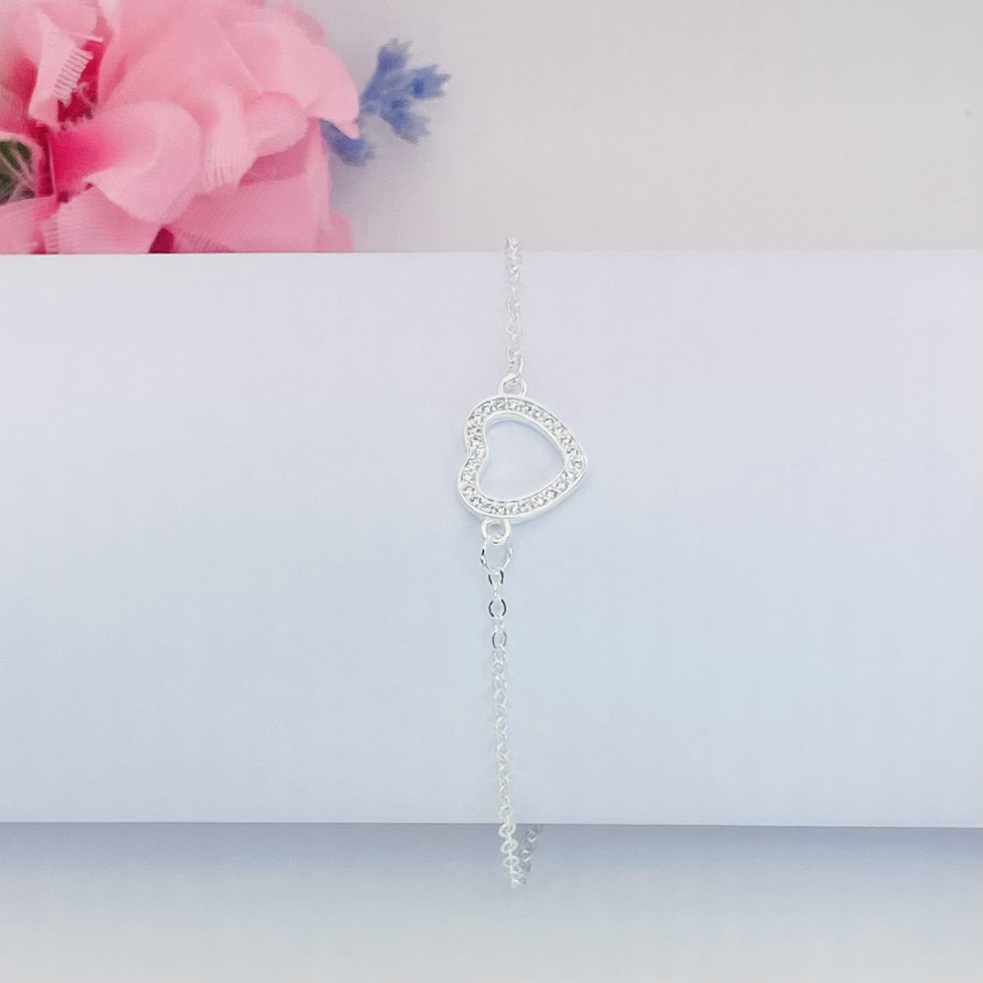 Pulseira cadeadinho banhado a prata 925 (70 milésimos) + verniz italiano, com pingente de coração cravejado.