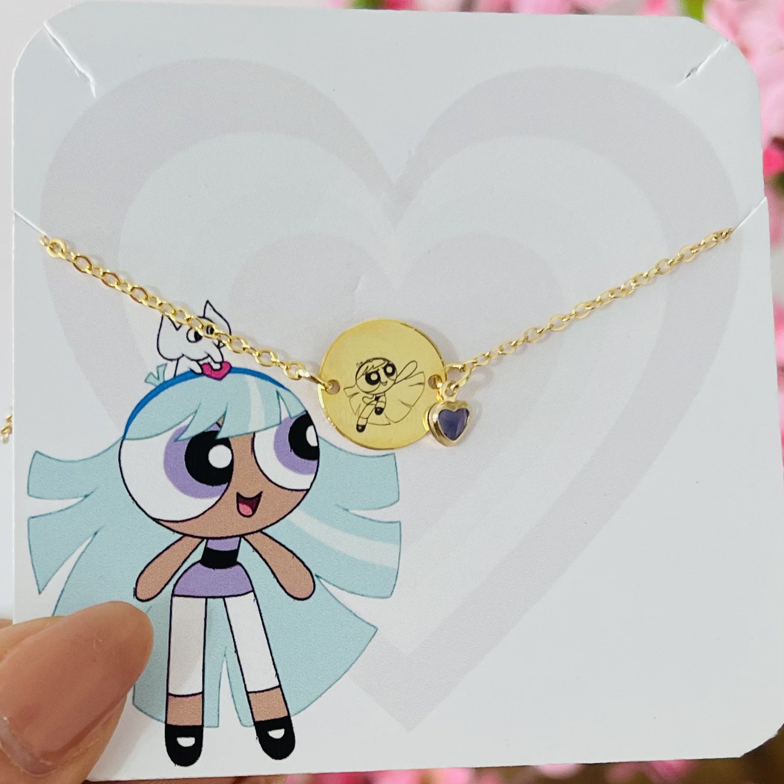 Pulseira cadeadinho bipartida banhada a ouro 18k (4 milésimos) + verniz italiano, com pingentes de medalha da estrela e mini coração roxo.