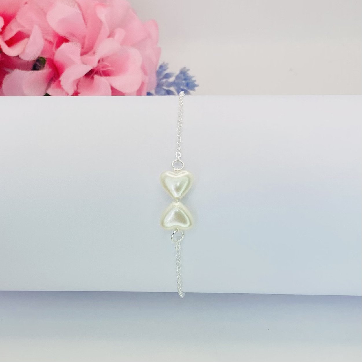 Pulseira cadeadinho banhada a prata 925 (70 milésimos) + verniz italiano, com pingente de laço em pérolas.