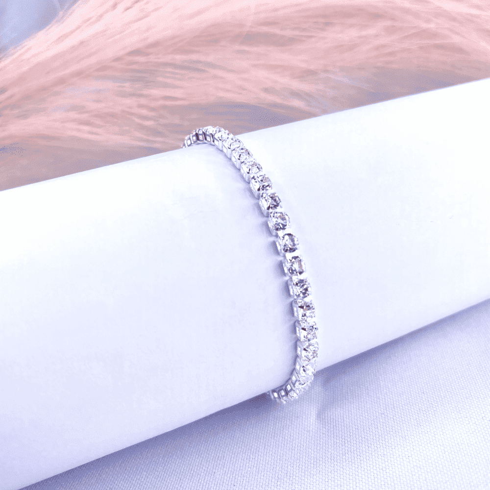 Pulseira riviera banhada a prata 925 (70 milésimos) + verniz italiano, cravejado com zircônias.Medida da pulseira: 14 cm + 5 cm de extensor.
