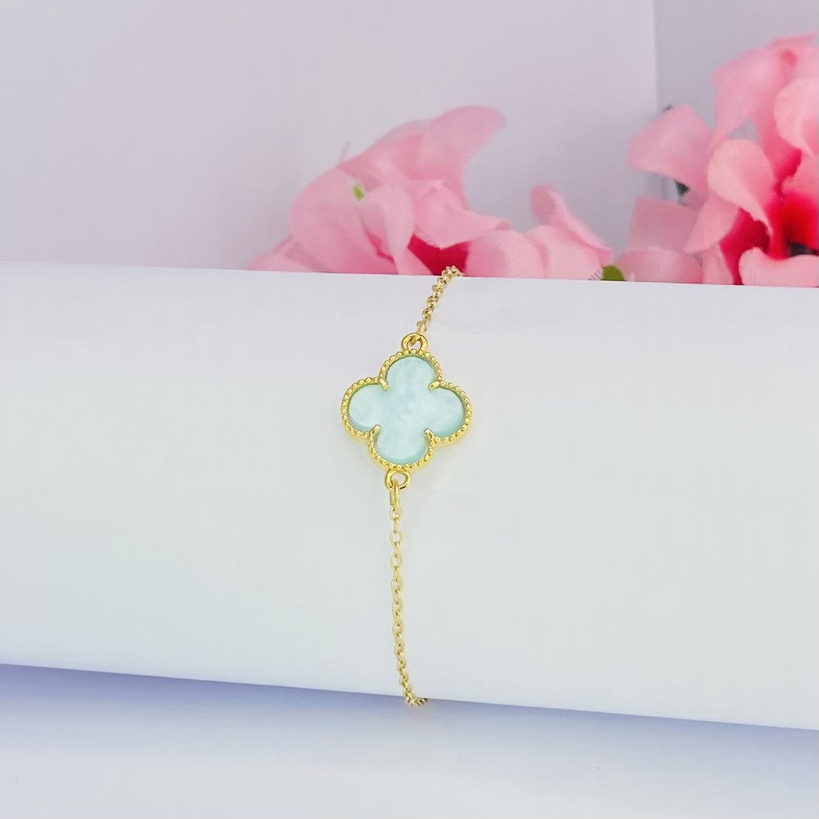 Pulseira cadeadinho banhado a ouro 18k (4 milésimos) + verniz italiano, com pingente de trevo azul claro.