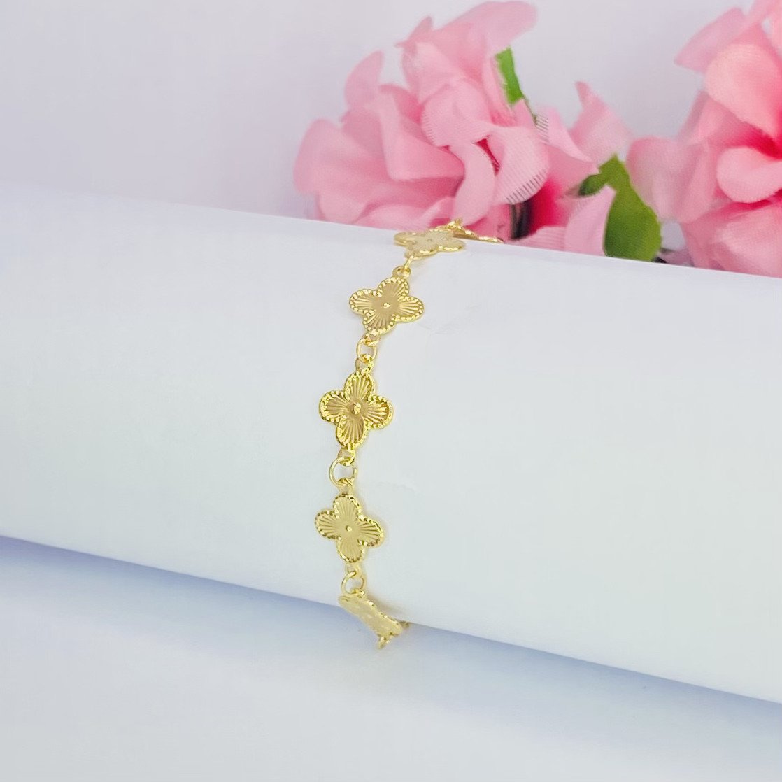 Pulseira trevos banhado a ouro 18k (4 milésimos) + verniz italiano.