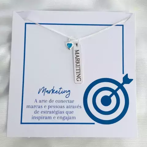 - plaquinha gravada a laser "marketing" + mini coração azul.